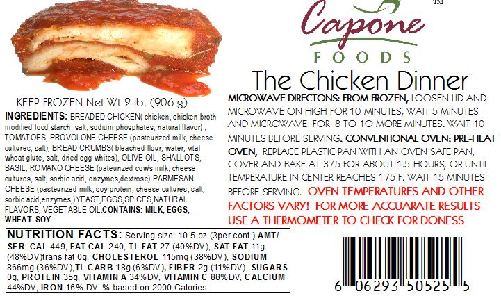 Lightly breaded chicken breast, layered between our signature Plum Tomato and basil sauce, Provolone and Pecorino Romano cheese. Simple and elegant! Remember, as with all our prepared entrees, allow to rest and settle for 10 to 15 minutes before serving.